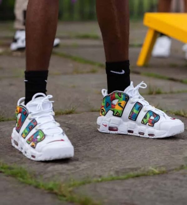 This Uptempo has a special meaning as well as a nice appearance. Whilst we’re currently unsure who to credit the message to, we still love the pair just as much thanks to its pleasing colour palette and subtle hues. The Uptempo silhouette has a translucent gridded upper that allows us to see the effect underneath. The instantly recognisable ‘AIR’ panelling is outlined, matching to the Branded branding at the top of the tongue, whilst mini-Swooshes in can be seen on the midsole and toe.