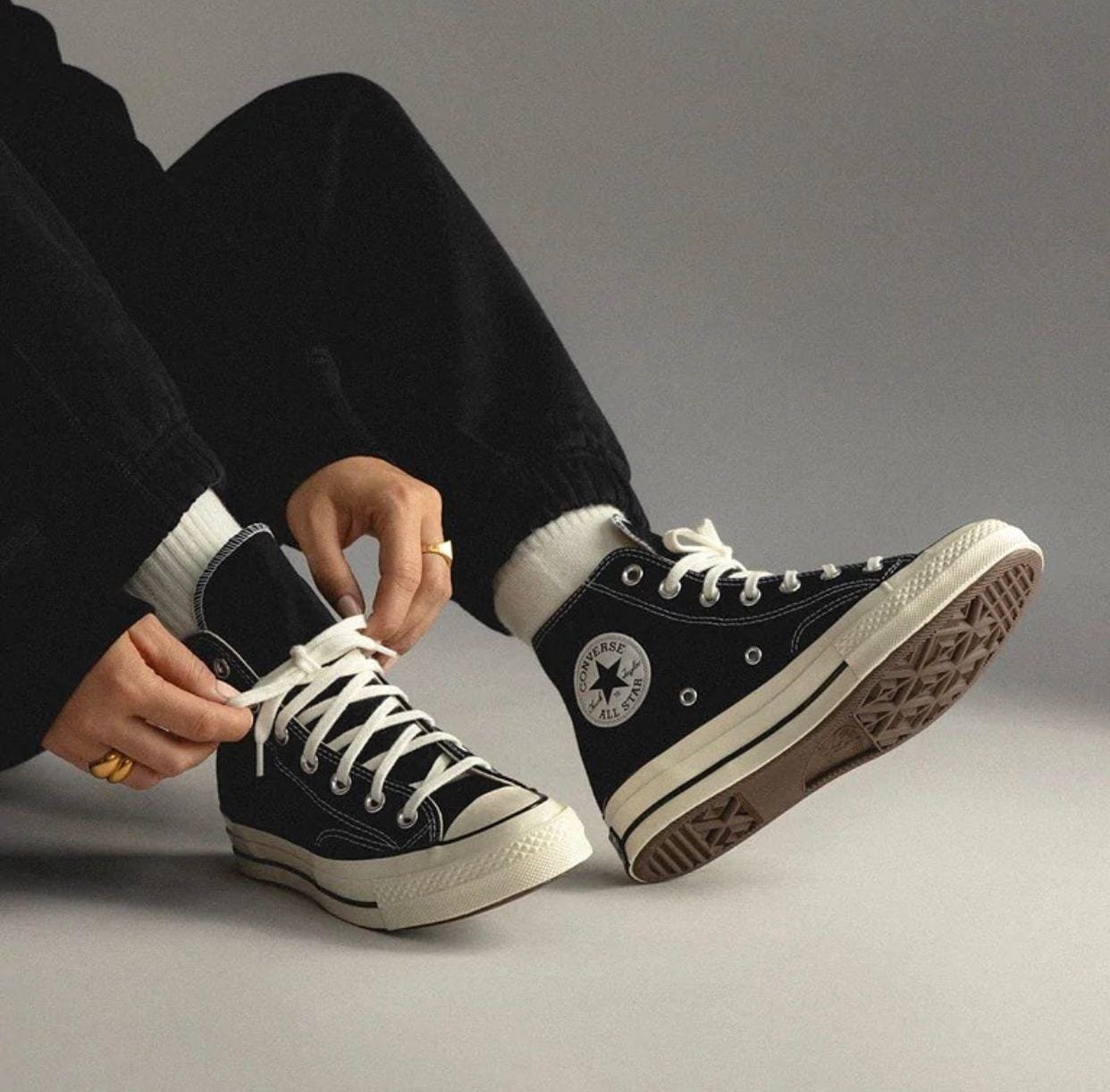 The Chuck 70 High Top sneaker has become an icon of everyday cool. This versatile sneaker by Kids features a black canvas upper, diamond outsole, and of course the ankle patch. An OrthoLite insole keeps it comfortable.