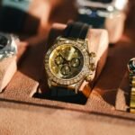 Features: Gold dial, handcrafted engravings, anti-reflective sapphire glass, and quartz movement.